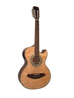 The SofiaMari Elite BQQ-TR-PU Bajo Quinto features a Natural Quilted Maple Top, Mahogany Back and Sides, Rosewood Fingerboard and Bridge, Traditional Multi Wood Binding, Abalone Trim, Tusq Nut and Saddle, Active Pickup
